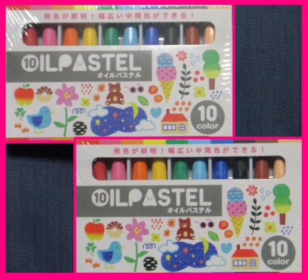 > 【送料無料:2点:オイルパステル:10色】 ★発色が鮮明:幅広い中間色ができる:多色・幅広で描る:柔らかくしなやかな描き心地:クレヨン 絵画