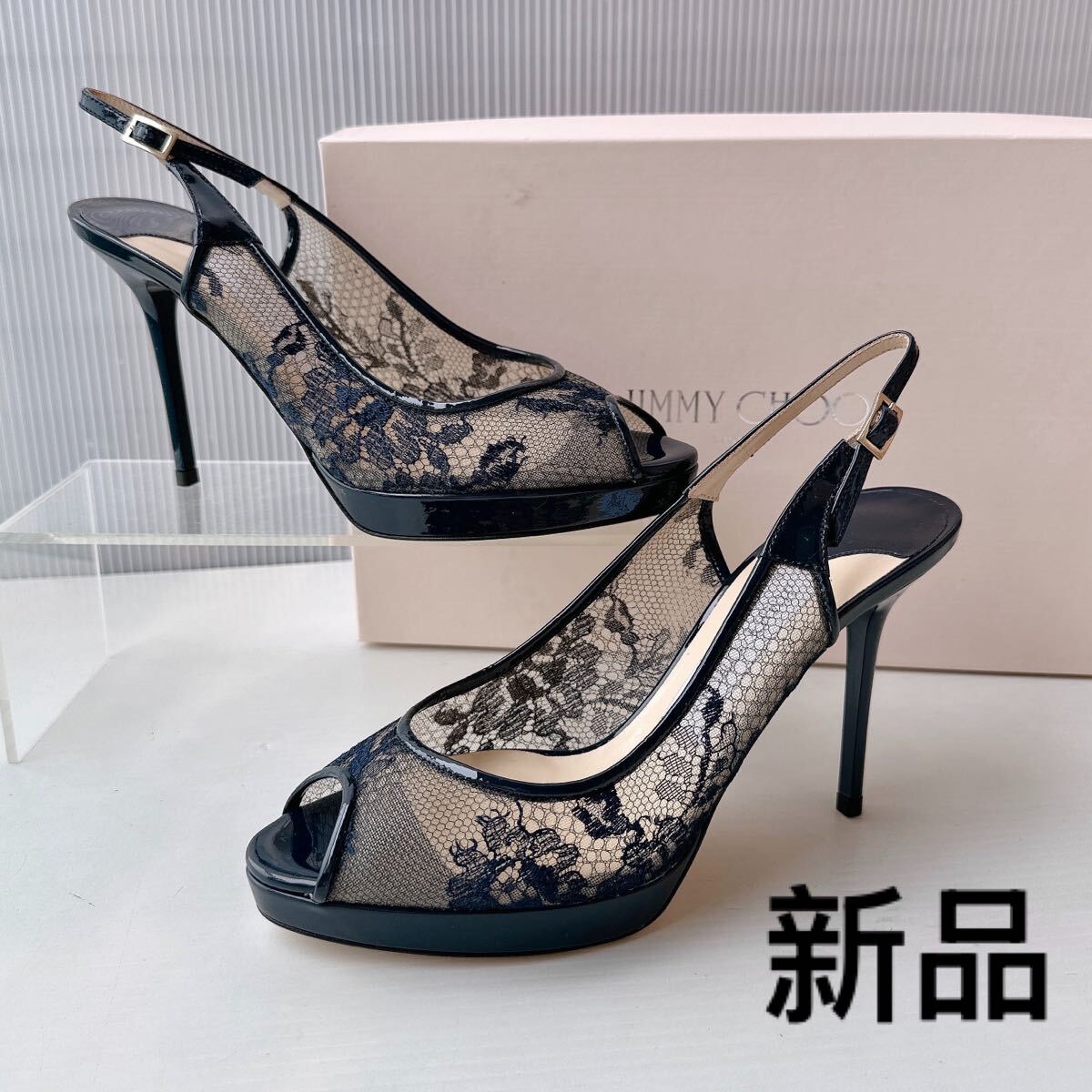 > JIMMY CHOO ジミーチュウ 花柄 レース ストラップ付き 厚底 ハイヒール パンプス サンダル シューズ 靴 黒 ブラック レーディス 35.5 新品