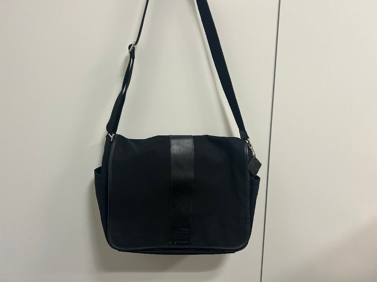 - COACH コーチ ショルダーバッグ キャンバス×レザー ブラック メッセンジャーバッグ メンズ レディース A4サイズ可 通勤通学 バッグ 現状品