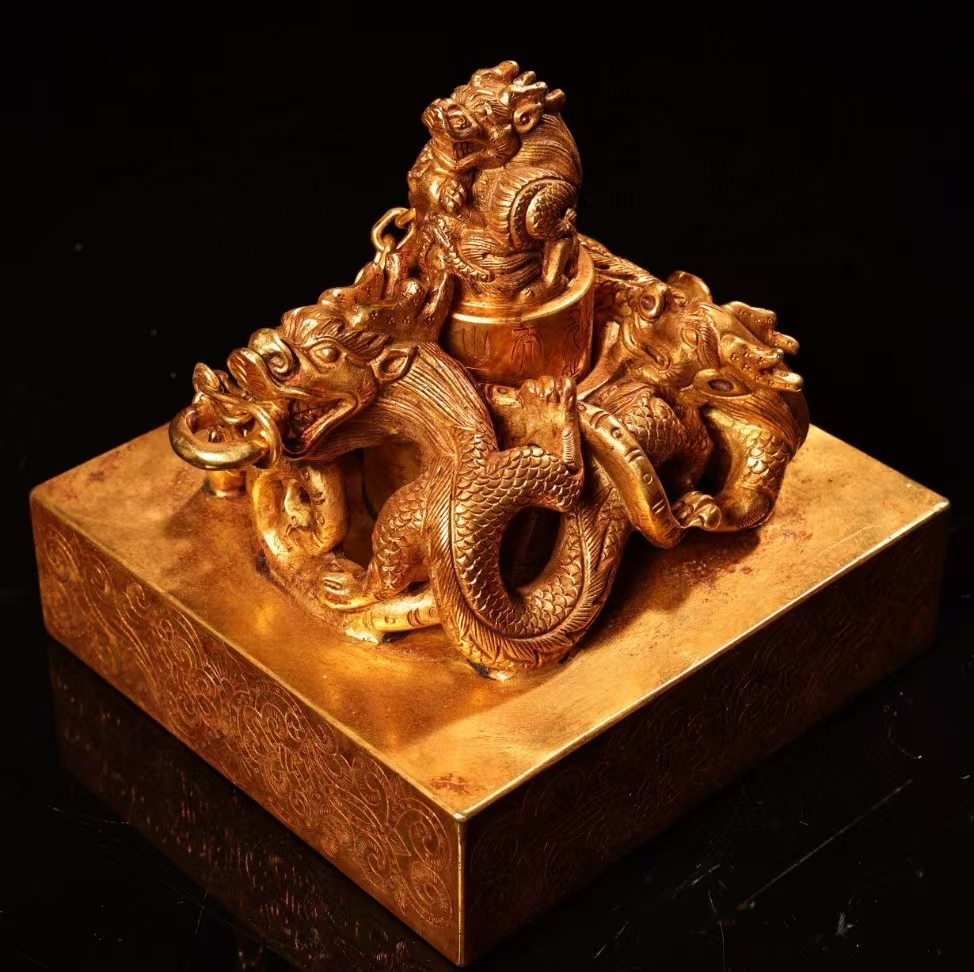- 印鑑 清代 秘蔵 金の帝王神竜が玉璽を印刷 皇室の国王の玉璽 文臣武将印鑑 印鑑の方 文房具 古印材 銅琉金 唐物 收蔵品 時代物 古置物