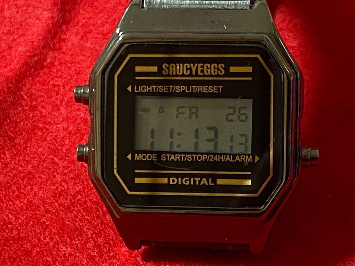 - SAUCYEGGS デジタル腕時計 取扱説明書付き 動作品 良品ブラックゴールド