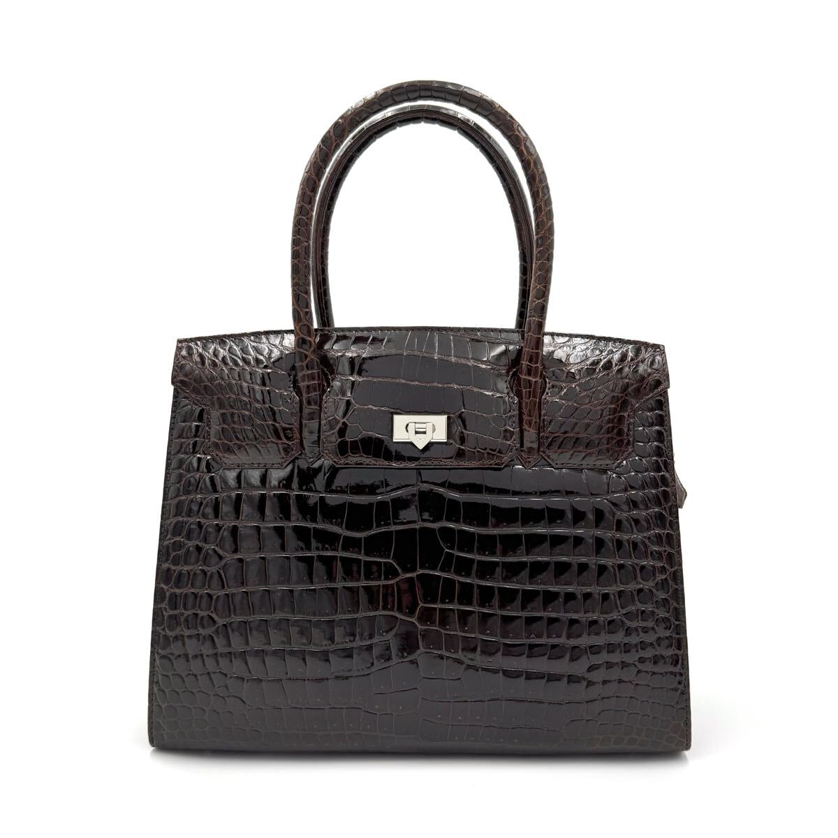 - YAMAGUCHI ハンドバッグ シャイニングクロコダイル JRA ブラウン