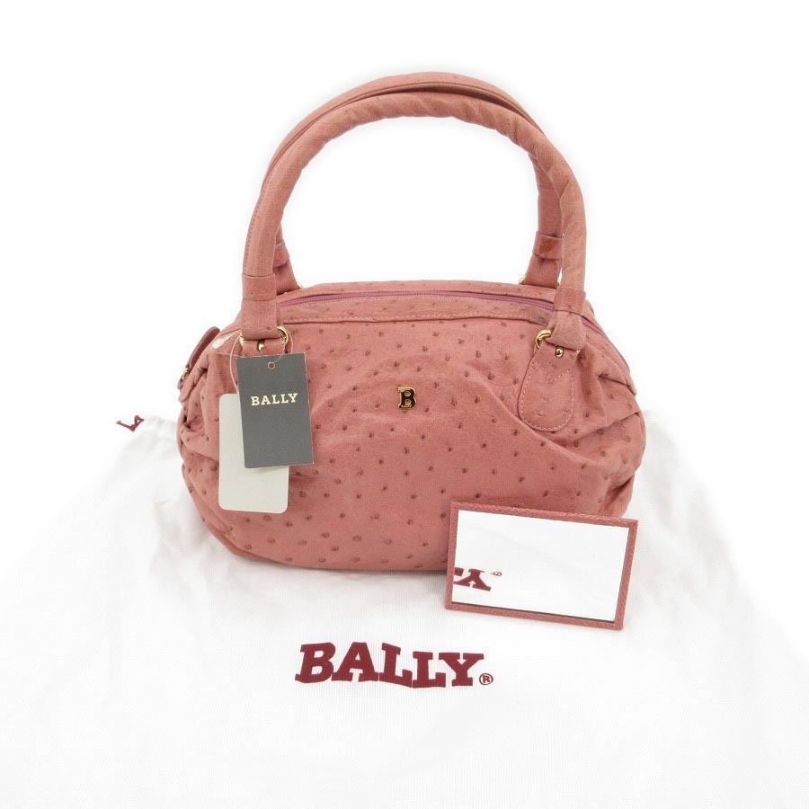 - 送料無料 新品 未使用 バリー BALLY ハンドバッグ ラウンド オーストリッチ レザー ミラー付き ピンク系 レディース