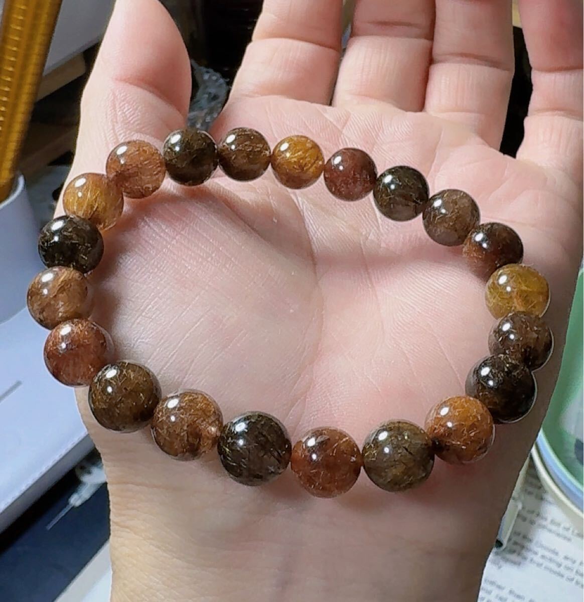 - SS-0266 MIXルチルクォーツ 天然本水晶保証 <ブラジル産>丸玉約9mm ミックス 金運 財運 ギャンブル運 パワーストーン 天然石