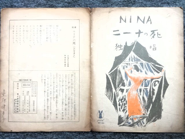 - ■5D50 声楽譜 ニーナの死 シシリア―ノ ペルゴレージ/作曲 妹尾幸陽/訳詞 ピアノ伴奏譜付 セノオ音楽出版社 昭和4/8 13版
