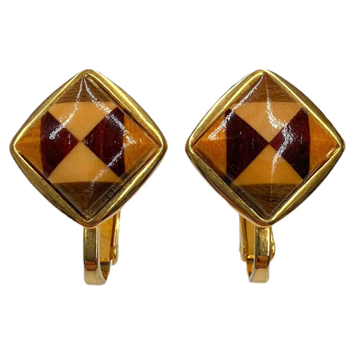 - 寄木細工 寄せ木細工 木製 イヤリング 四角 スクエア 耳飾り アクセサリーレトロ アンティーク