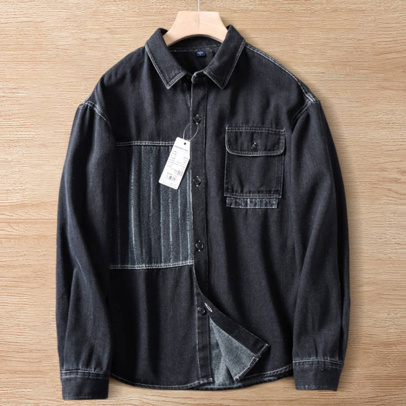 - W0358-3XL黒色 新品 綿混 デニム 長袖シャツ メンズ 柔らかい 吸汗速乾 通気 涼しい ダンガリー 薄手 春夏 オシャレ デニムシャツ サマー
