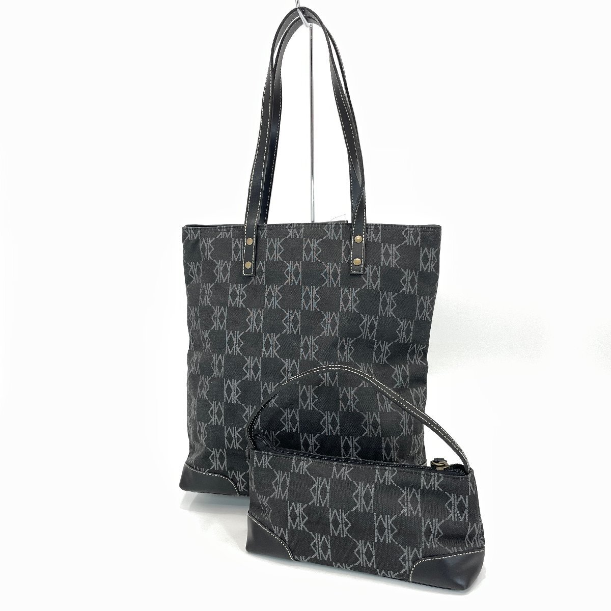 > ER-100【 MICHEL KLEIN 】 ミシェルクラン トートバッグ コスメポーチ ブラック ミニポーチ ミニバッグ 持ち手付 MK柄 モノグラムライン
