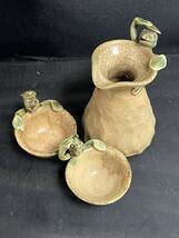 > レア【河童お猪口&河童お銚子】陶器 酒器 河童 日本酒 骨董 河童好き 縁起物 工芸品 アンティーク オブジェ インテリア