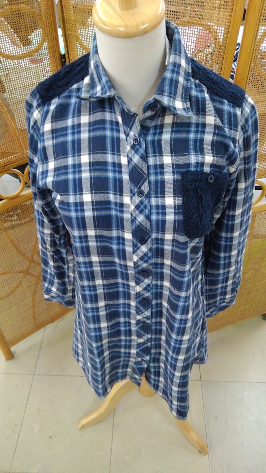 - 【2004-2G】レディース トップス チェック 青 Mサイズ no.3227【220101005427】