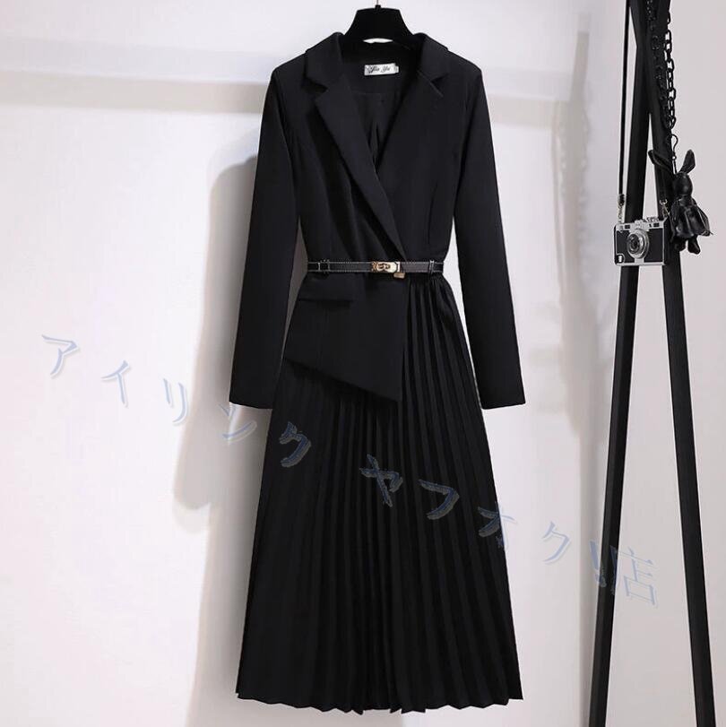 - 新品★入学式ママスーツワンピースセレモニースーツレディース Vネックプリーツ エレ ガント 着痩せ 結婚式通勤 ブラック
