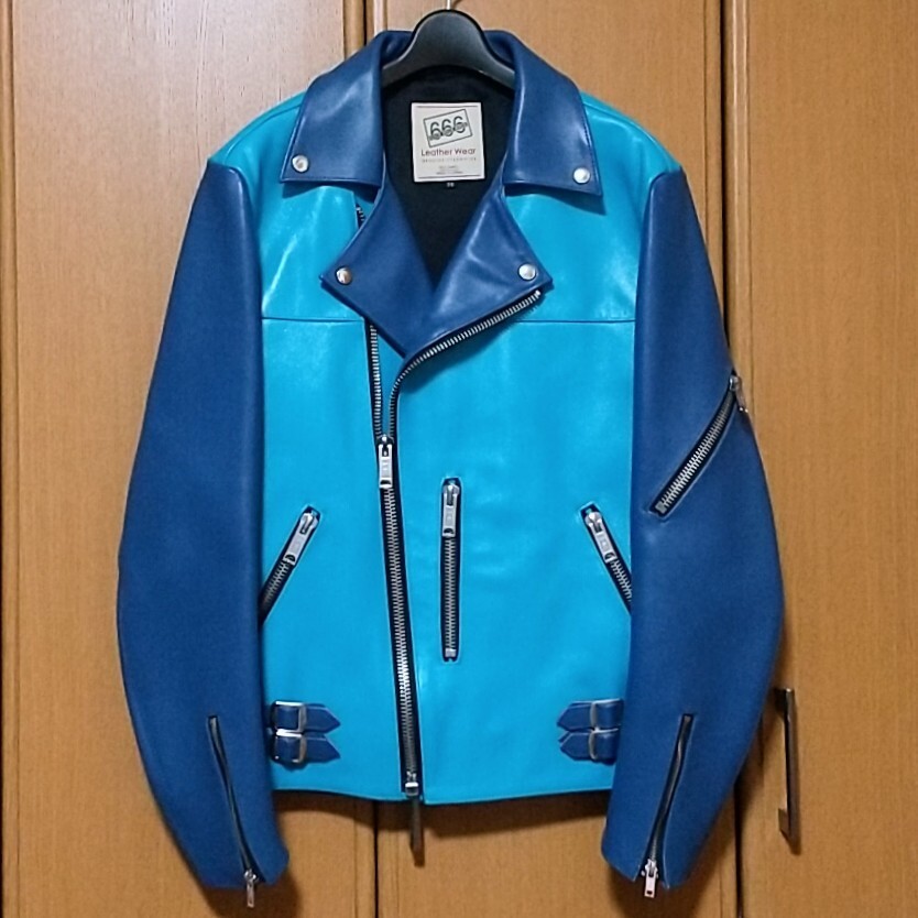 > 666 Leather Wear ダブルライダースジャケット ブルー×ターコイズ 38 小の字 Lewis Leathers James Grose highwayman 牛革 日本製