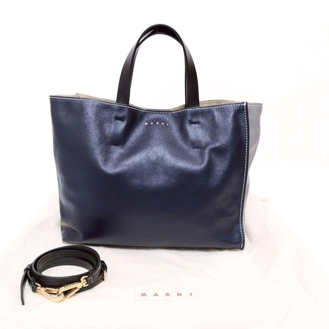 - 【美品】MARNI マルニ トートバッグ ミュゼオ ソフト ネイビー グレー