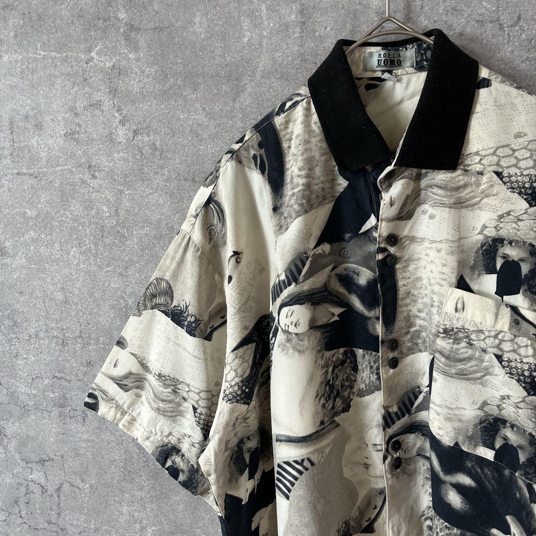 - アートデザインシャツ 半袖 柄シャツ ゆったりサラサラMメンズ 2連ボタン