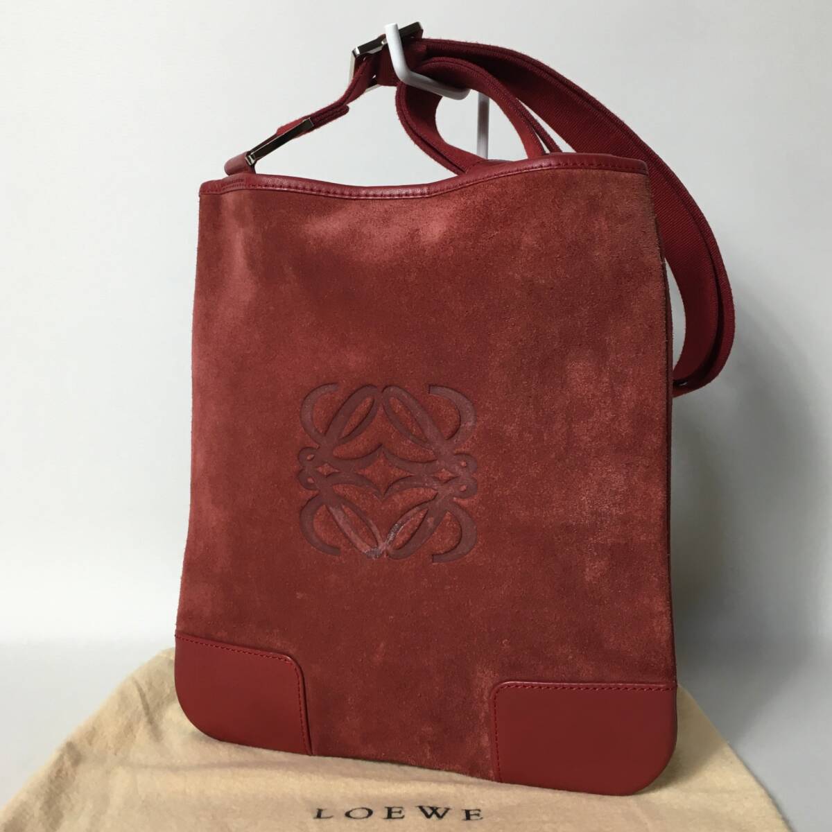 - 2504-118|ロエベ ショルダーバッグ レザー スエード レッド アナグラム