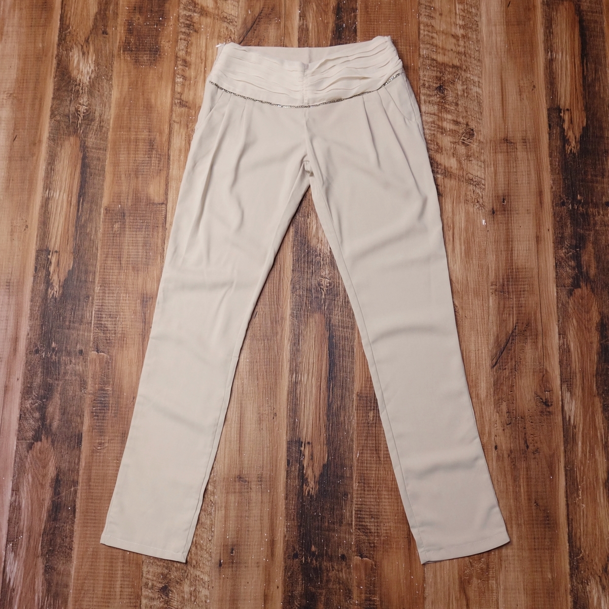 - 美品 VINTAGE チェーン付ハイウエストスキニーパンツ レディース フェミニン パーティー Sサイズ ベージュ KP15