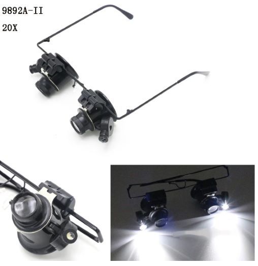 - 20倍ルーペ 時計修理ルーペ 宝石鑑定用 ライト付き 拡大鏡 【使用電池CR1620*4】