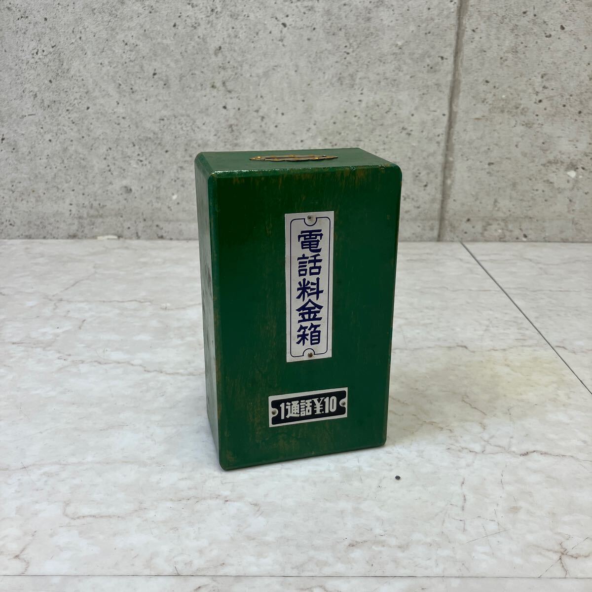 - 送料無料 貯金箱 電話料金箱 木製 昭和レトロ 鍵欠品 箱破損あり
