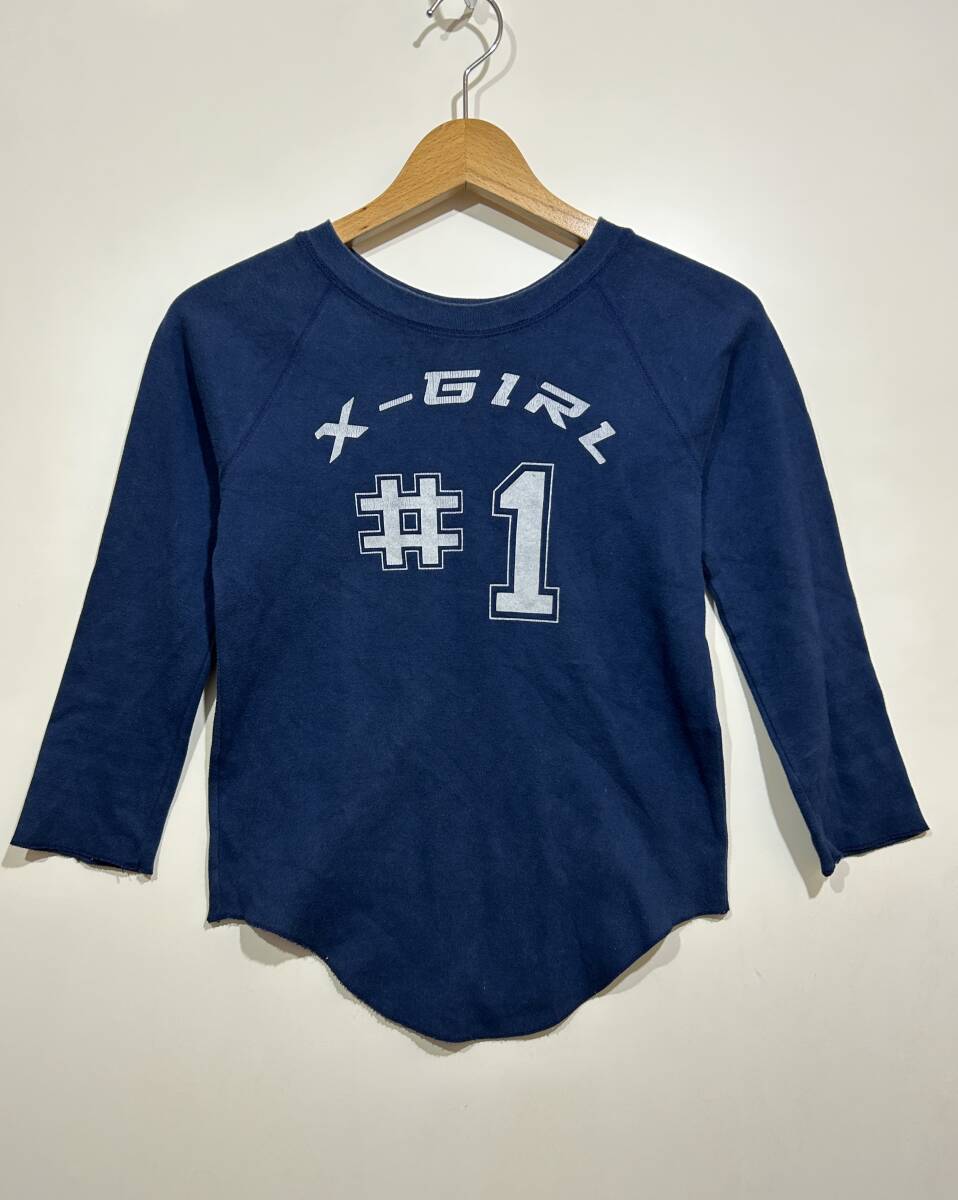 - ★ X-GIRL ラグラン コットン Tシャツ ネイビー 紺色 ナンバリング #1 ロゴプロント チビT タイト トップス