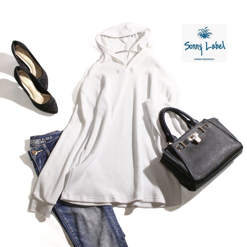 - サニーレーベル Sonny Label URBAN RESEARCH アーバンリサーチ 春 夏 ワッフル パーカー フード カットソー プルオーバー ホワイト 白