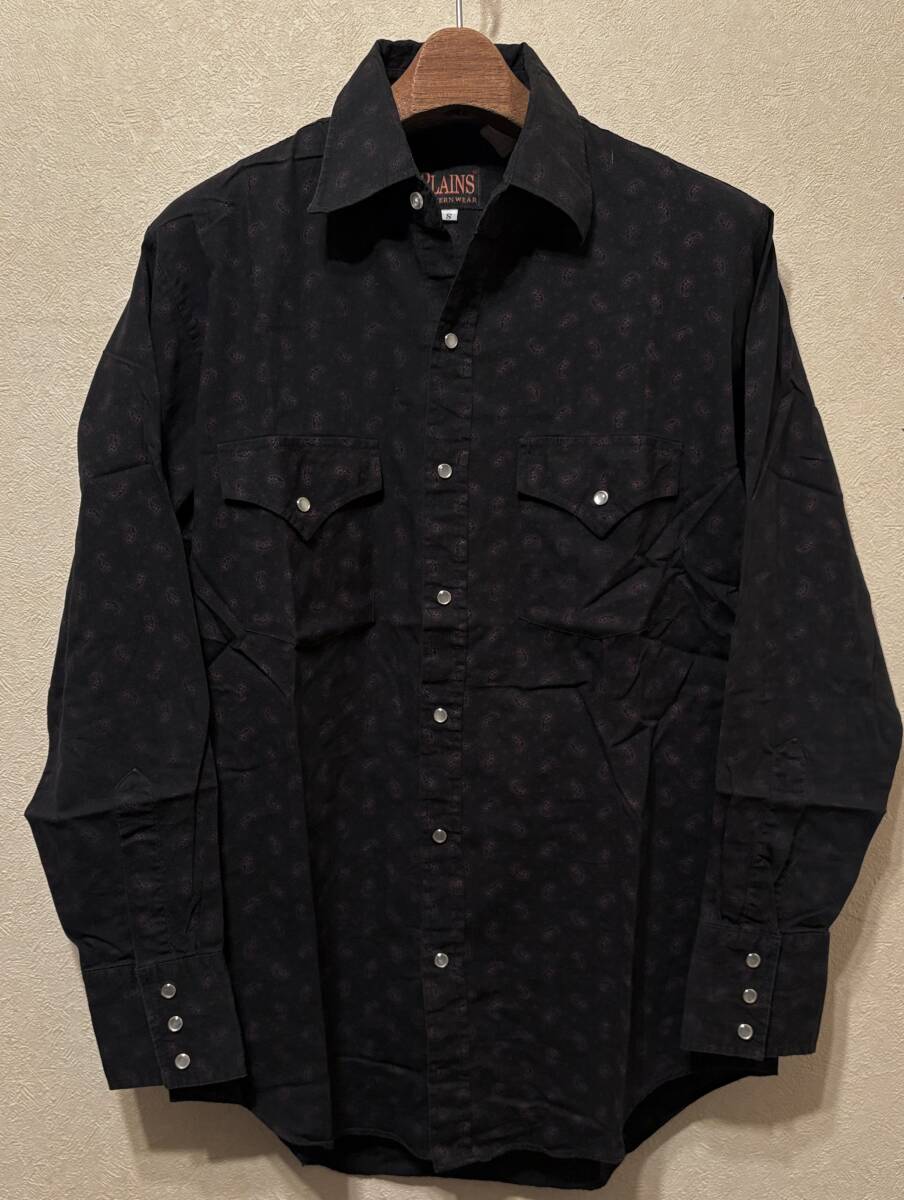 > レア色ペイズリー柄00s90sオールドPLAINSウエスタン長袖シャツS-M希少カラー黒ブラック紫パープル総柄y2k90年代2000sビンテージ