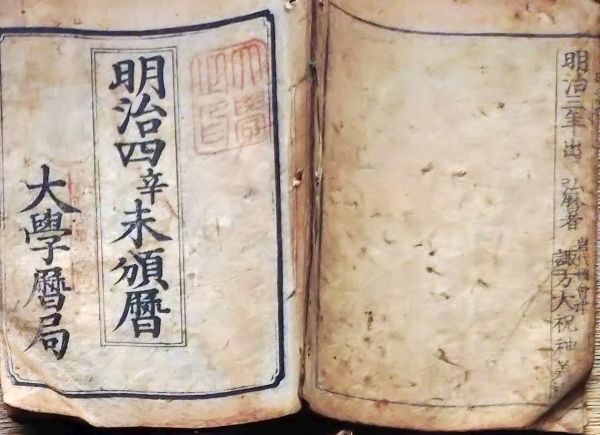 - f25060807〇江戸暦 明治暦旧暦 大学暦局 明治4年(1871年) 〇和本古書古文書
