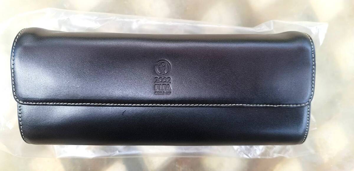 - 【2002 FIFAワールドカップ公式ロゴ刻印】本革調マルチケース/小物入れ/メガネ・ネクタイ収納などにも/非売品記念品・箱付き