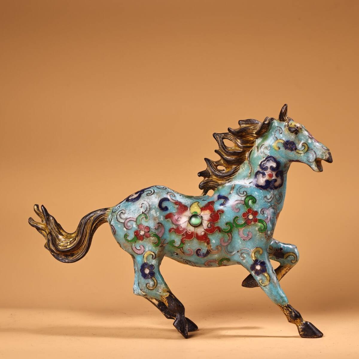 - 蔵友旧蔵出 銅製 塗金 景泰藍 琺瑯彩 奔馬 希少珍品 貴重品 置物 古賞物 中国古玩 中国古美術品