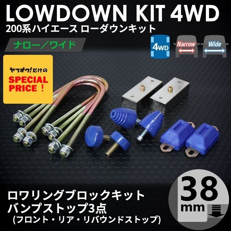 > ▼ティスファクトリー▼ ハイエース 200系 1型-7型 4WD ローダウンキット 2 [ブロック38mm(1.5インチ) + バンプ3点] S-GL DX ナロー ワイド