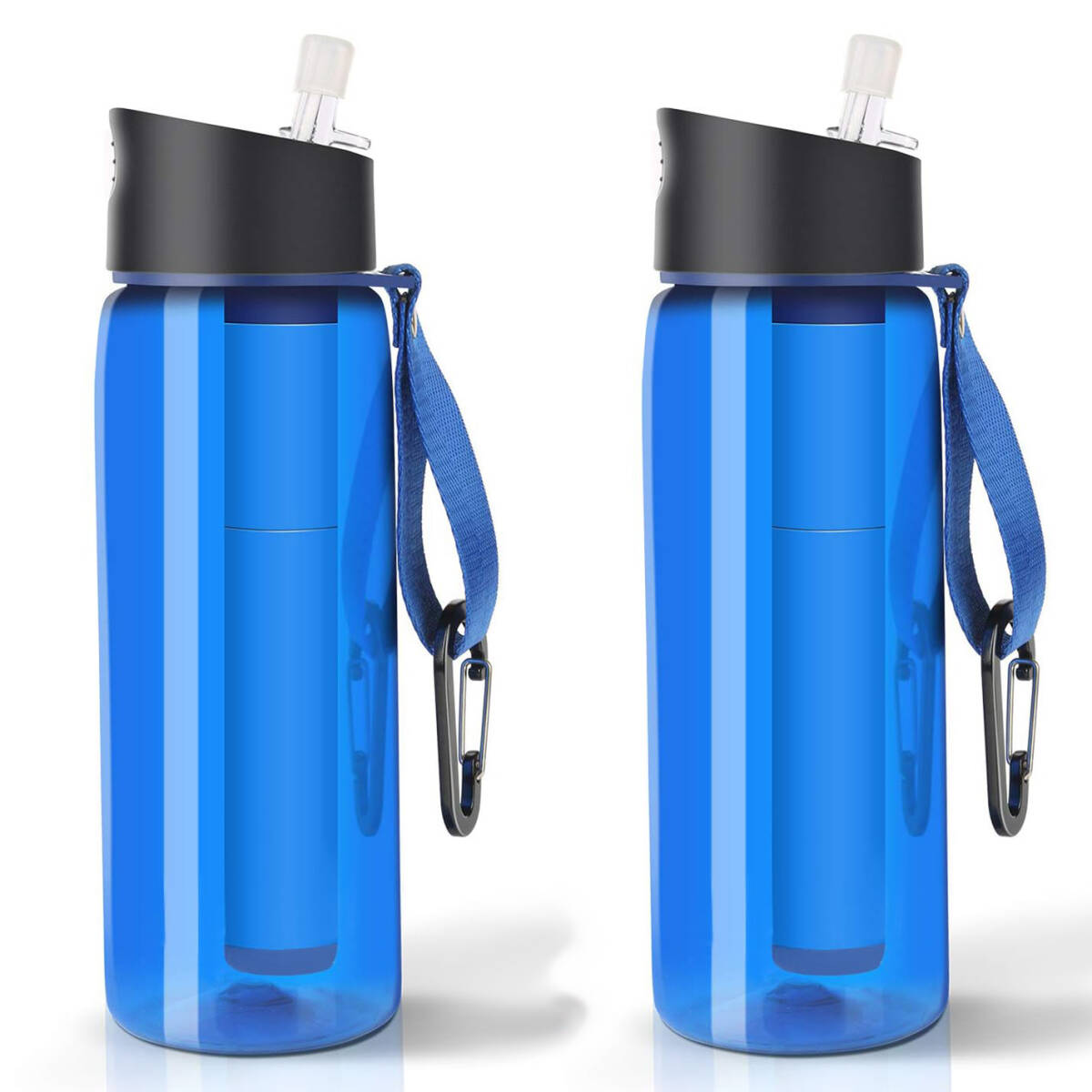- 2本セット 浄水ボトル 携帯浄水器 災害 防災 アウトドア サバイバル 濾過フィルタ一体型 オールインワン浄水ボトル 方位磁石付 770ml