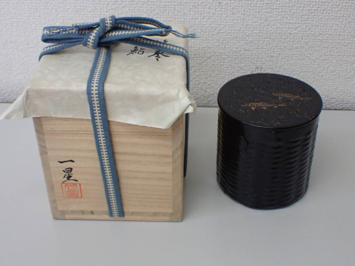 - 茶道具-6; 箕輪一星 篭 棗 蒔絵 螺鈿 鮎 高さ;約7.3×径;約7.2cm 共箱 ★