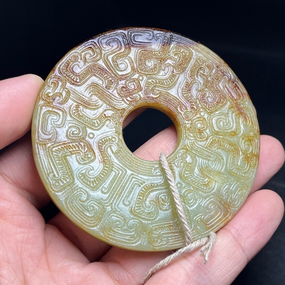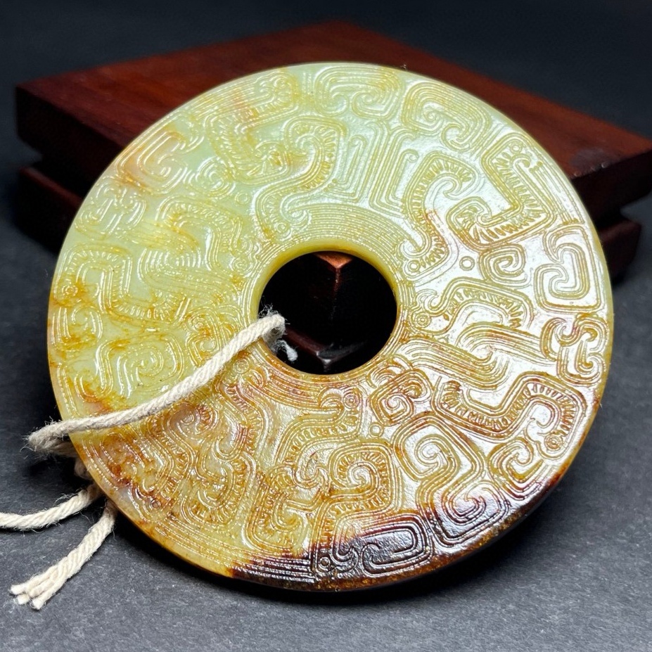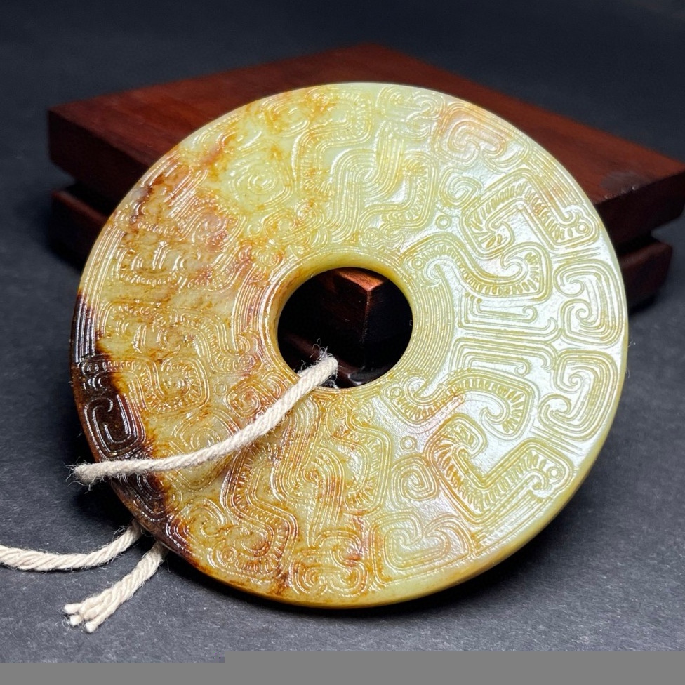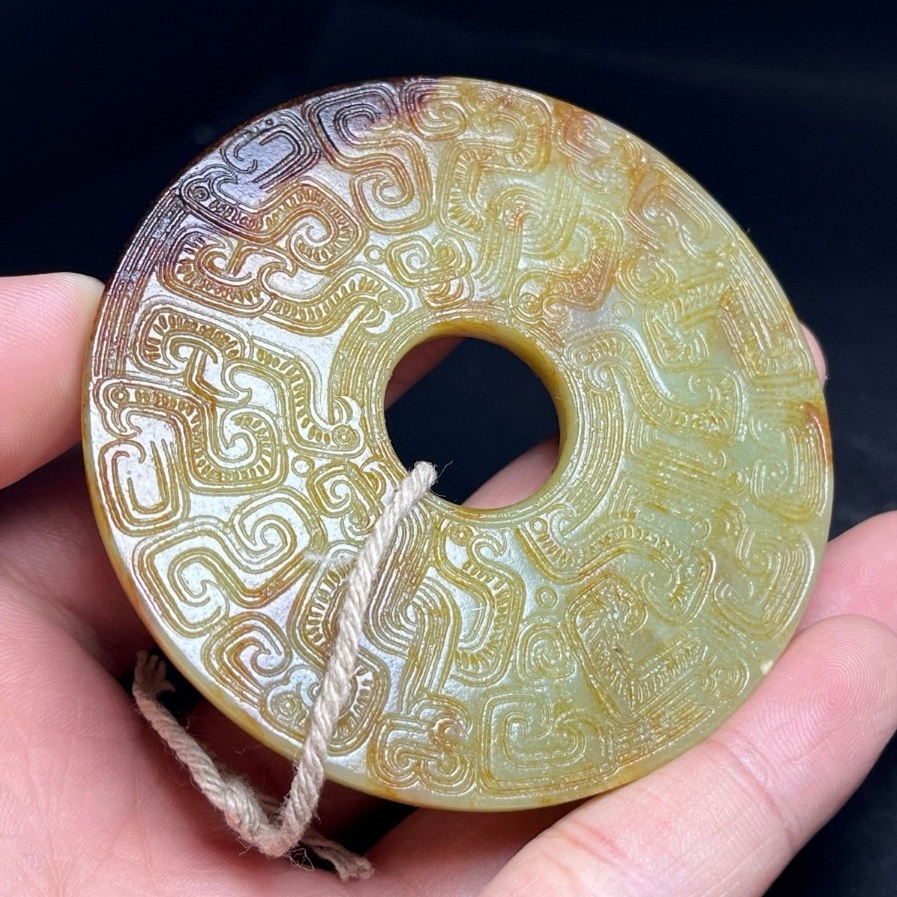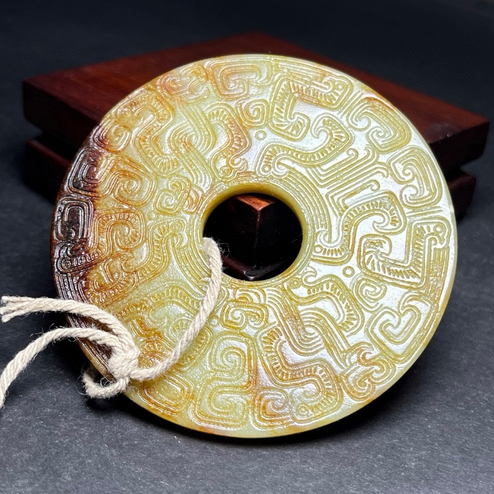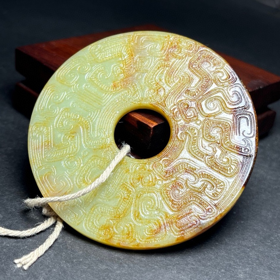 - 唐物 清 玉彫 和田玉 高古玉壁 極細工 古美術品 時代物 中国古玩 骨董品 D66