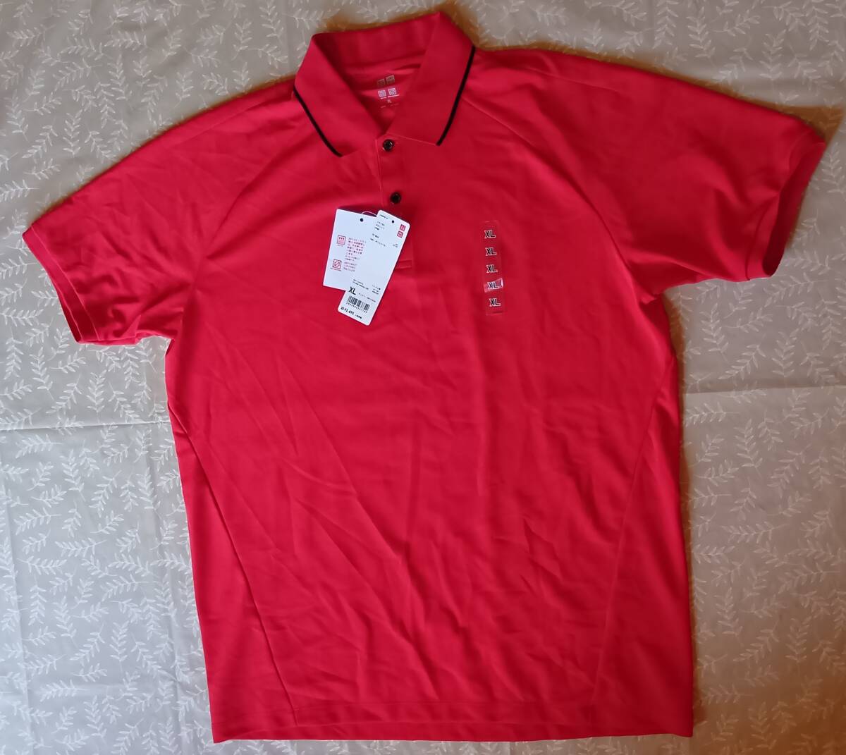 - 未使用品 ユニクロ UNIQLO 半袖 ドライEXポロシャツ サイズXL ラグラン袖 やや光沢レッド ドライ速乾薄手生地 税抜2490円の品