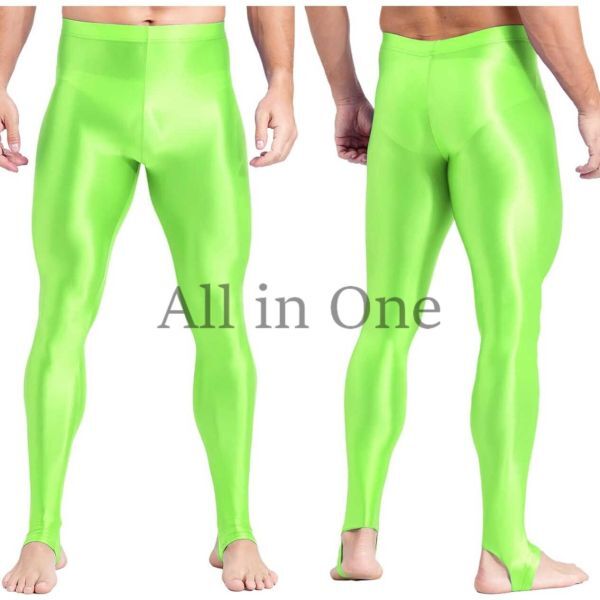 - 177-39-20 光沢 ツヤツヤ アンダーフット ストラップ【グリーン,Mサイズ】男性 メンズ スポーツ レギンス コスプレ ジム ワークパンツ .2