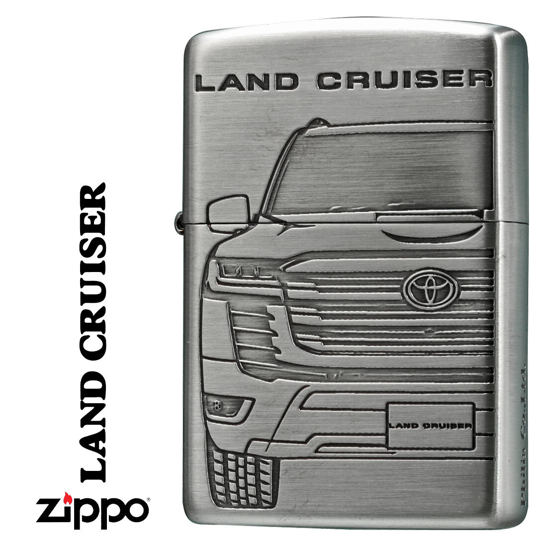 - zippo(ジッポーライター)TOYOTA ランドクルーザー トヨタ自動車公式認定 銀サテン古美両面エッチング【ネコポス可】