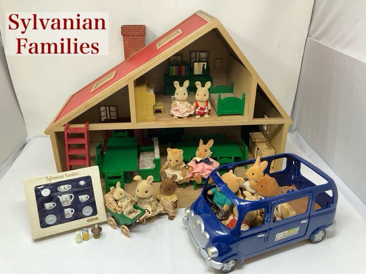 - Z25【シルバニアファミリー デラックスハウス◆初期の赤い屋根・家具・人形・車・小物など◆まとめ売り!】1985 エポック社 当時物