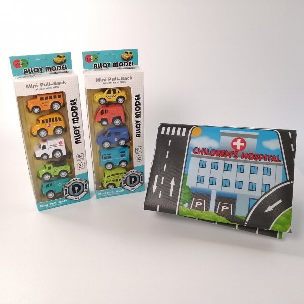 > ★在庫処分SALE★ DIE-CAST プルバックカー セット ミニカー 車10台 プレイマット 標識セット 収納袋 07 00181