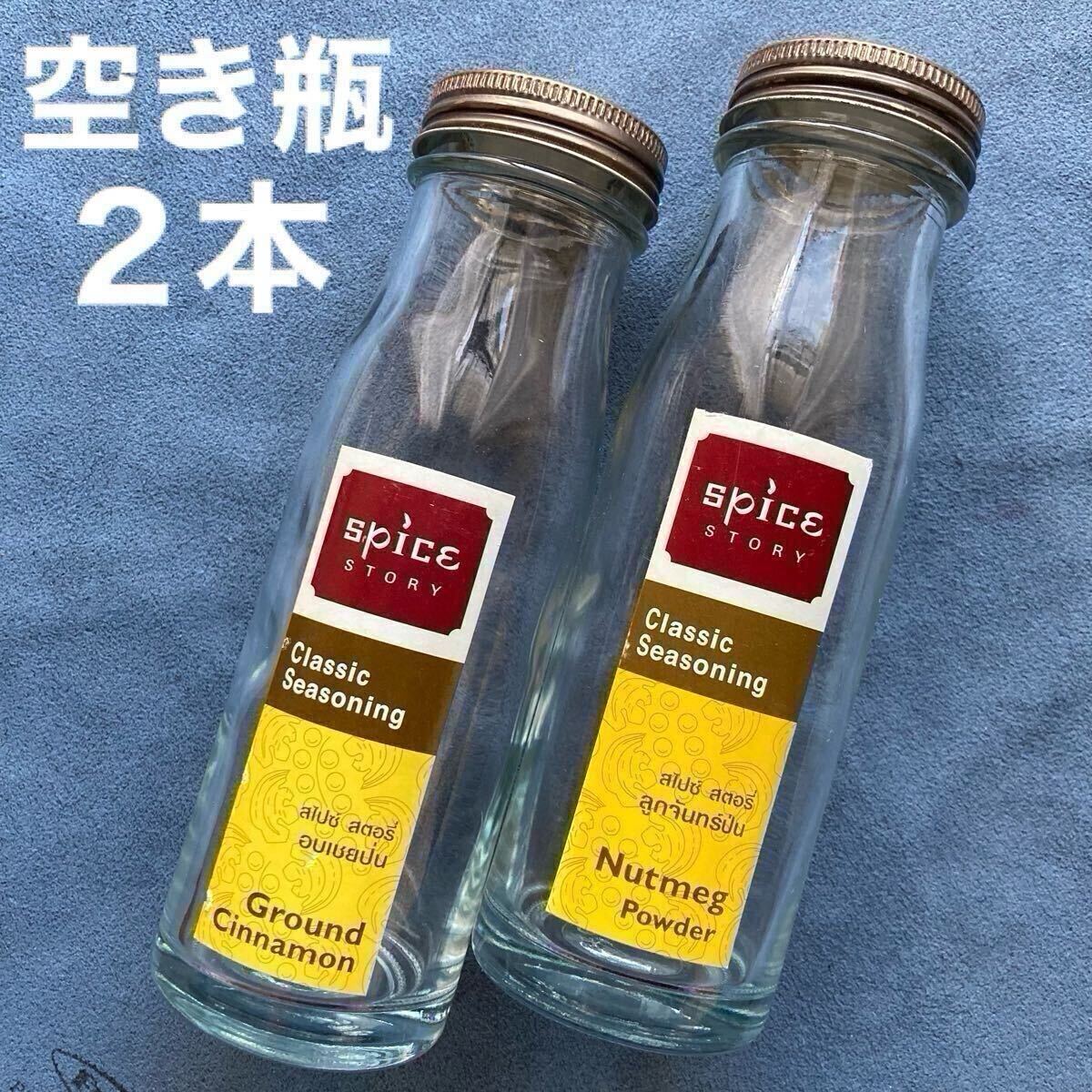 - 雑貨/ガラス瓶「タイ土産 スパイス空き瓶2本」中身無し空き容器/一輪挿しや飾りに♪
