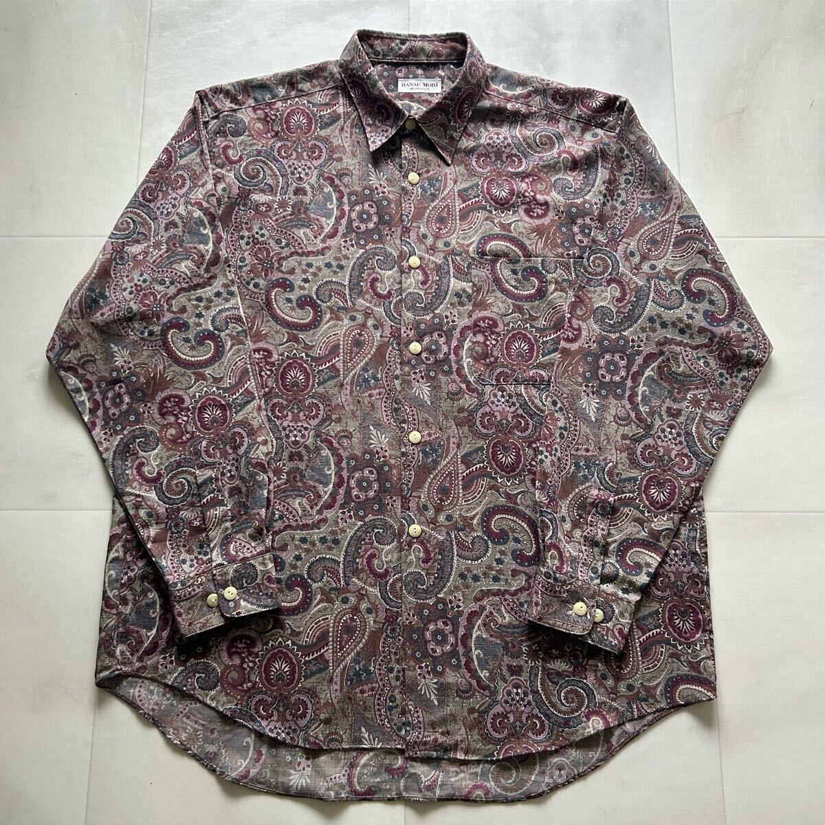 > HANAE MORI MONSIEUR ハナエモリ 森英恵 総柄 柄シャツ ペイズリー 花柄 レトロ アート ビンテージ 長袖シャツ