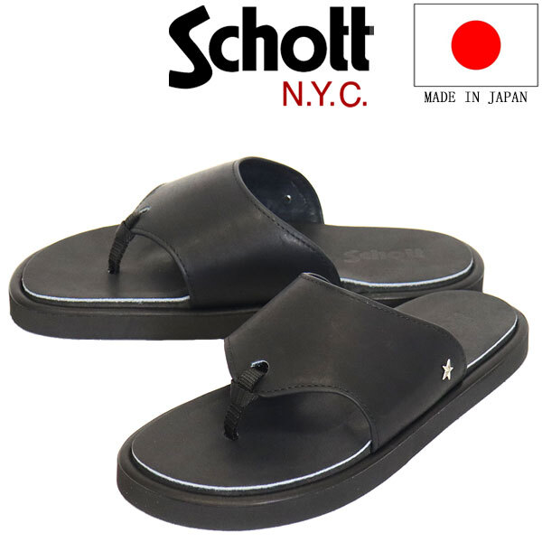 > Schott (ショット) S25318 Wrangler Thong ラングラー トング レザーサンダル シューズ 日本製 010BLACK S-25.0cm-26.0cm