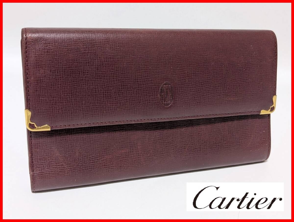 - 即決 Cartier カルティエ 三つ折り 財布 ボルドー ウォレット レディース メンズ mbs