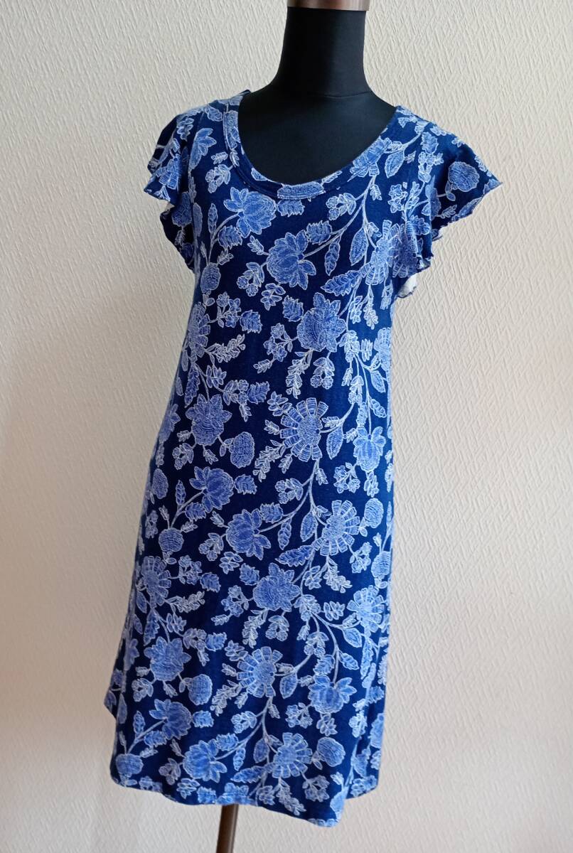 - ワンピース GAP 半袖 フレンチ袖 ブルー 花柄 XXS 未使用品 タグ付き