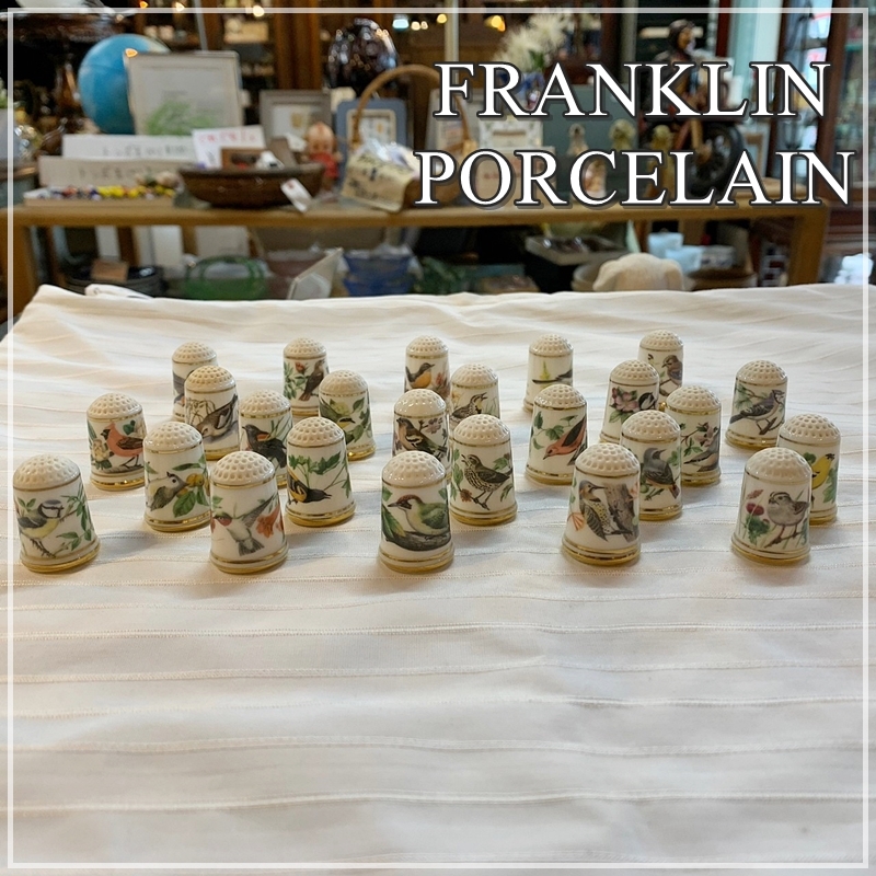 > 【福岡】アンティーク シンブル 指ぬき 全25個 セット フランクリン ポーセリン 陶器 磁器 金彩 鳥 花 希少品 廃盤 ソーイング【ME1020-2】