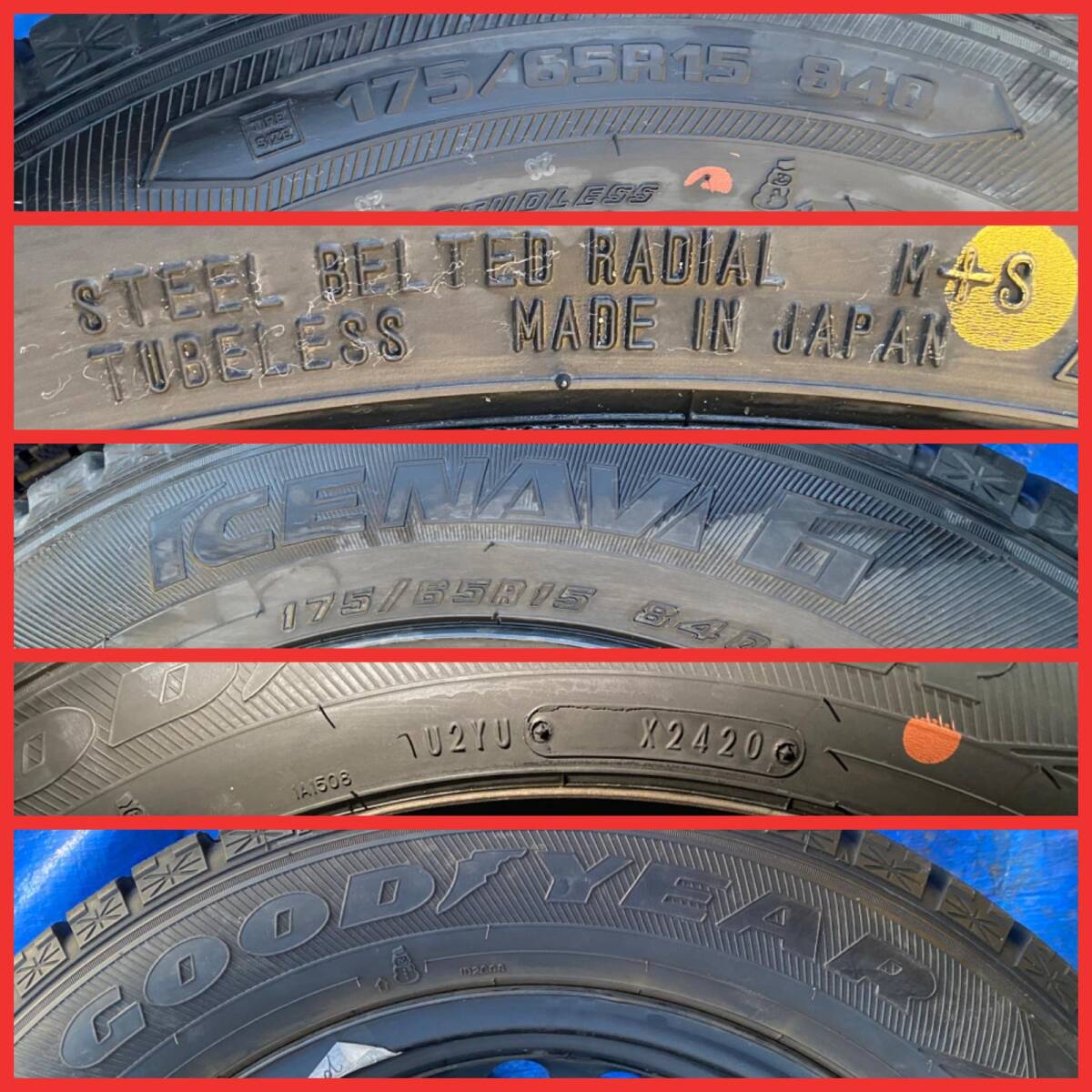 ![ZT-151] 4本 4穴 ホイール グッドイヤー雪タイヤ ICE NAVI 6 175/65R15 84T★2020★日本製 溝 7.33mm 取り外した車両:トヨタアクア拍卖](http://yahooimg2.ymibuy.cn/i/auctions.c.yimg.jp/images.auctions.yahoo.co.jp/image/dr000/auc0106/user/8d86e7d9b67b5e517c64a13353f87a135082b9de9c88ecfd460e811292b87d9b/i-img1200x1200-17495443966329eexhnr25.jpg)