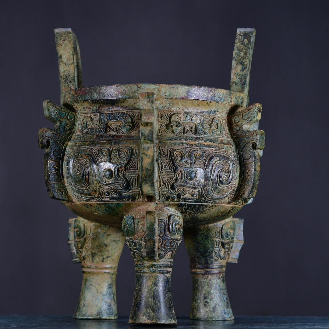 - 青銅器 旧蔵 商周時代 青大牙子鼎 酒器,尊,鼎 銅製 唐物 收蔵品 時代物 古美術 古置物 希少珍品 供養品 文房具 極細工6.11