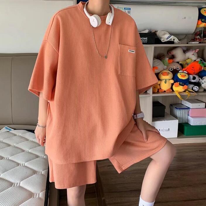 - 人気品夏 ショートパンツ セットアップ メンズ 上下セット Tシャツ ハーフパンツ 半袖Tシャツ オレンジ XLお色選択可