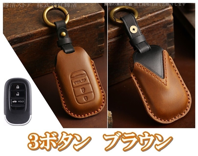 - 新品即決/送料無料 ホンダ 茶本革 レザー ツートン スマートキーケース キーカバー ヴェゼル RV3 RV4 RV5 RV6 シビック ZRV ステップワゴン