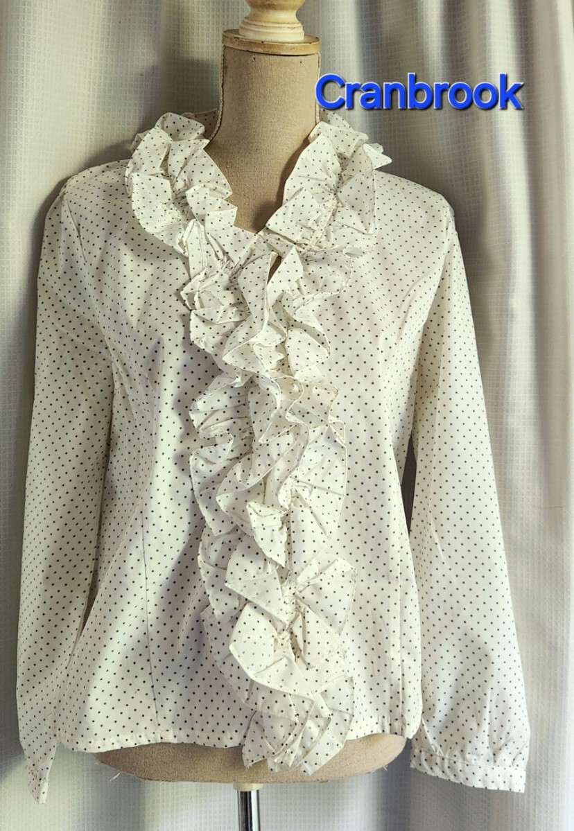 - 使用レベル Cranbrook 大きいサイズ フリルコットンブラウス 白 長袖