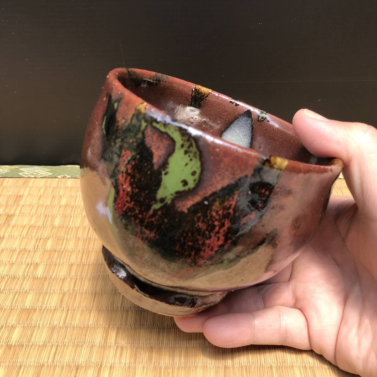 - 鉄釉三色のお茶碗、河井寛次郎風?茶器 茶入 小鉢 杯 珍味入れ(R70603_D)