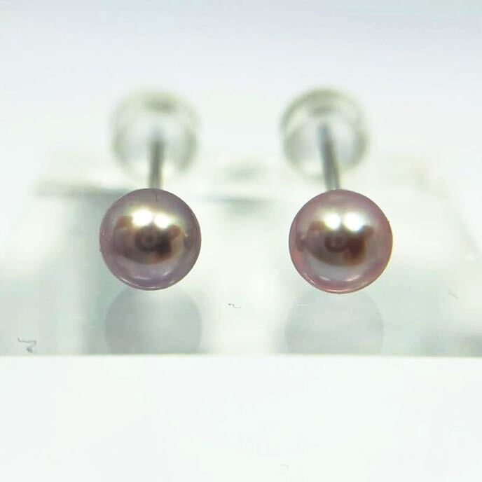 - 本真珠ピアス 絶品彩凛級 パープルカラー ベビーパール 刻印 4.5mm 直結ピアス 絶品ブルーカラー 照り艶抜群 pearl
